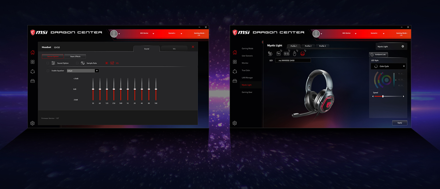 Даний пристрій сумісний із додатком Dragon Center, у якому можна задавати різні параметри.